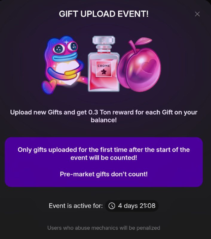 Користувачі отримають 0.3 TON за кожен подарунок, завантажений на їхній баланс у MRKT протягом акції.